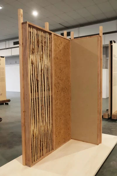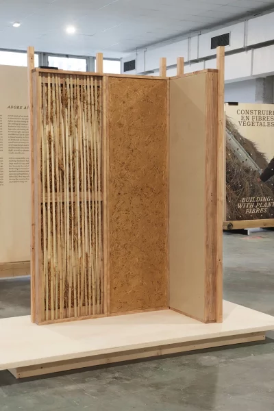 Onze fragments de murs à échelle 1 accompagnent l’exposition materia issue du prix d’architecture materia award. L’équipe design d’amàco a réalisé sept de ces éléments. Parmi eux, l’écorché du mur en torchis préfabriqué et enduit en terre crue du projet finaliste INSTITUT FRANÇAIS D’ÉTUDES ANDINES.