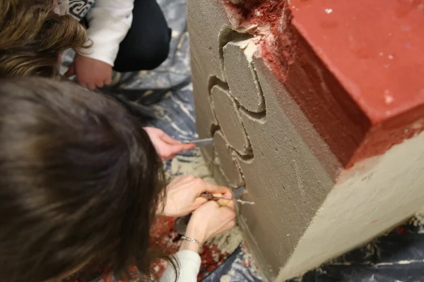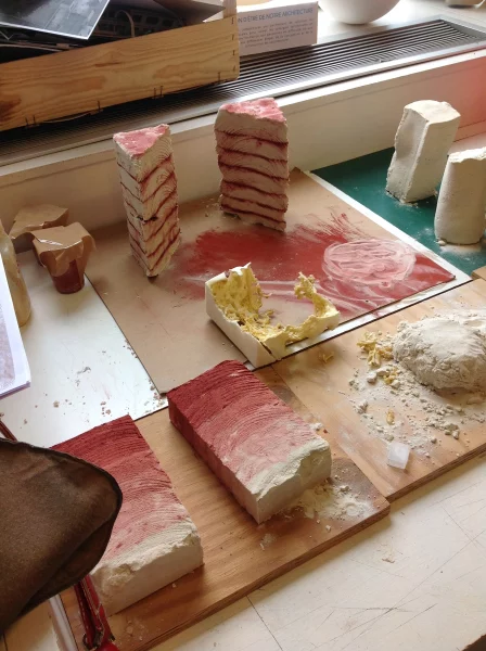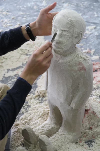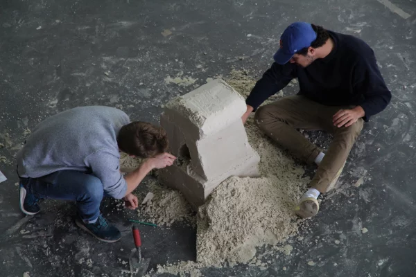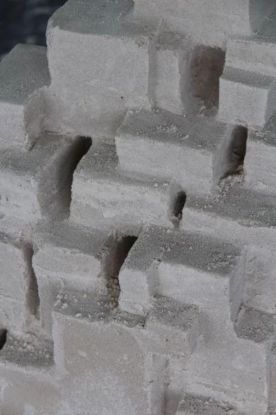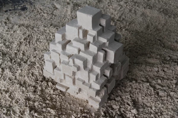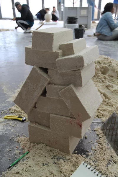 Ce dernier invite les étudiant·es à appliquer les connaissances acquises au cours de ce module à un petit processus de conception, processus dans lequel il s’agit d’aller chercher les limites de la matière en sculptant un bloc de sable coffré.